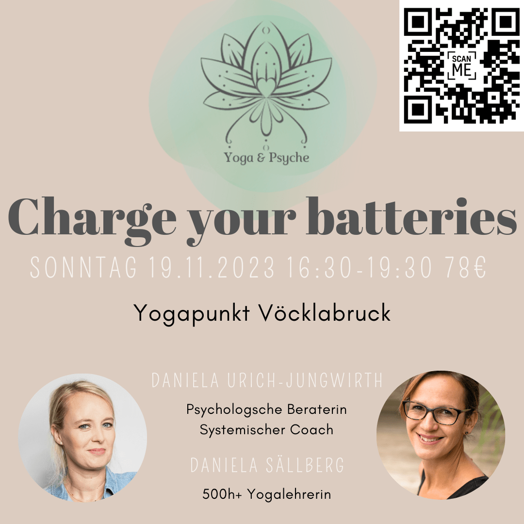 Selfcare und Me-Time – Zeit für mich in der Kleingruppe mit Daniela Sällberg und Daniela Urich-Jungwirth. Sei dabei bei 3 Stunden, in denen Du deine Batterien wieder aufladen kannst! Mit Yoga-Sequenzen sowie angeleiteten Inputs und Übungen aus der psychologischen Beratung erlebst du im Workshop Dein inneres Strahlen, genießt tiefe Entspannung und übst gelebte Selbstfürsorge. WO: … Workshop „Yoga & Psyche – Charge your batteries“ weiterlesen