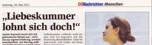 OÖ Nachrichten – Eröffnung Liebeskummerpraxis in Vöcklabruck (28. Mai. 2011): 28. Mai 2011Presseartikel, TrennungAndreas Urich Liebeskummer lohnt sich doch! … Vollständiger Presseartikel